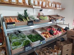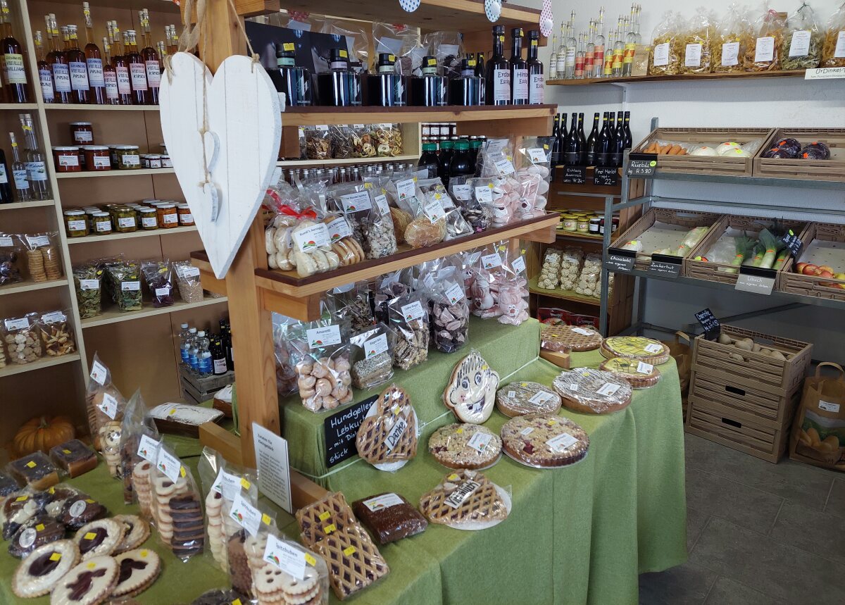 Erdbeeren, Himbeeren, Brombeeren, Heidelbeeren, Kirschen, Zwetschgen, Äpfel, Birnen, Trockenfleisch, Rauchwürste, Saisongemüse, Kartoffeln, Bohnen, Kefen, Kürbisse usw. Saisonfrüchte, Dörrfrüchte, Eingemachtes, Konfi, Sirup, Süssmost, Eier, Edelbrände, Liköre, Gebäck, Meringues, Tee und vieles mehr